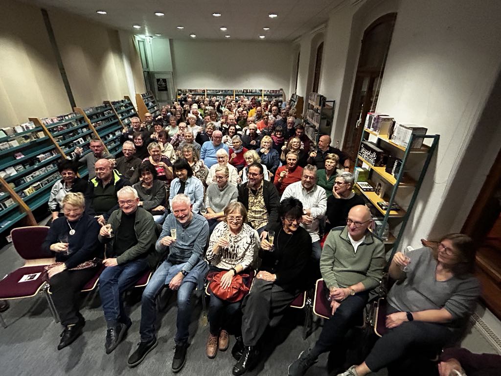 Die 100 Gäste, die am 12.11.2025, also direkt an Neil Youngs Geburtstag, in die Stadtbibliothek Eisenberg kamen, um Andreas Schirnecks Programm „80 Jahre Neil Young. Songs & Stories“ zu erleben, stießen gemeinsam mit dem Musiker Schirneck mit einem Schlückchen Sekt auf Neil Youngs Wohlergehen an. Das war der gelungene Auftakt eines wunderbaren Abends, sowohl für die Gäste, als auch den Künstler und die Veranstalter. Für letztere war es zudem noch eine Premiere, eine überraschende und freudvolle, denn so viel Publikum wie an dem Abend wurde bisher noch nicht im Haus zu einer ausverkauften Veranstaltung begrüßt. Toll!
