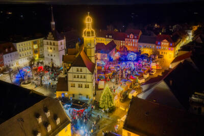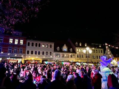 Auch die letzte Großveranstaltung des Jahres kann wieder als voller Erfolgt bezeichnet werden. Über 10.000 Besucherinnen und Besucher aus Eisenberg und der Region strömten an drei Weihnachtsmarkt-Tagen in die Innenstadt. Besondere Besuchermagnete waren wieder die beliebten Walkacts, welche auf dem Steinweg und dem Markt unterwegs waren, die musikalischen Einlagen auf den beiden Bühnen am Markt sowie das Angebot an elektronischer Musik auf dem Hof der Stadtbibliothek. Richtig voll wurde es wieder am Samstag, als sich die Weihnachtsfiguren-Parade ihren Weg über den Steinweg auf den Markt bahnte. Über 100 verschiedene internationale Weihnachtsfiguren wurden von den Freiwilligen präsentiert. Bürgermeister Michael Kieslich zeigte sich dankbar für die Leistung der vielen haupt- und ehrenamtlichen Helferinnen und Helfer. Hier finden Sie einige Impressionen zum Weihnachtsmarkt-Wochenende 2025.