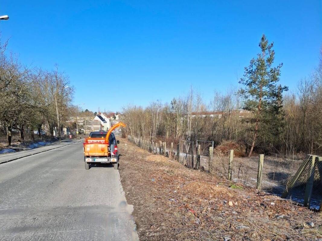 Egal ob in der Innenstadt oder im Außenbereich, der Bauhof ist im gesamten Stadtgebiet gefragt. So übernahm das Team in den vergangenen Tagen verschiedene Grünpflegearbeiten. Entlang des Radweges wurde auf einer Länge von 1,5 Kilometern ab der Königshofener Straße bis in den sogenannten "Nassen Wald" der Verschnitt an den begleitenden Grünflächen vorgenommen. Auch im nördlichen Teil des Friedensparks an der Stadthalle "Gunther Emmerlich" wurden in größerem Umfang Wildwuchs und damit ein öffentlicher Missstand entfernt, da hier die Fläche oftmals zur illegalen Entsorgung von Müll genutzt wurde. Entlang der Saasaer Straße wurden zur Verkehrssicherung ebenfalls Sträucher und straßenbegleitender Bewuchs zurückgeschnitten, auch um für den Straßenverkehr wichtige Sichtachsen sicherzustellen. Baulich tätig wurden die Mitarbeiter des Bauhofes am Stadion. Auf dem Parkplatz am Sportkomplex sind Pflasterarbeiten erfolgt, die den Nutzern des Fitnessstudios, der Kegelbahn und der Physiotherapie nun zu Gute kommen. Neben der Bereitschaft auch weiterhin noch den Winterdienst auf den Gemeindestraßen in der Kreisstadt abzusichern, erfolgten im Eisenberger Mühltal und im Gewerbegebiet "In der Wiesen" Reparaturen an den Banketten, welche leider regelmäßig durch Fahrzeuge, im Gewerbegebiet vor allem durch illegal parkende LKW, beschädigt werden. Die Arbeiten im Mühltal werden nach dem Mühltallauf im Verlaufe des Jahres fortgesetzt. Großer Aufgabenschwerpunkt des Bauhofes ist mittlerweile die Pflege der Spielplätze welche sich in der Obhut der Stadt Eisenberg befinden. So sind an vielen Spielanlagen dringend notwendige Verschnittarbeiten an Bäumen und Sträuchern vorgenommen und beispielsweise an der BMX-Bahn Vandalismus- und Diebstahlschäden beseitigt worden.