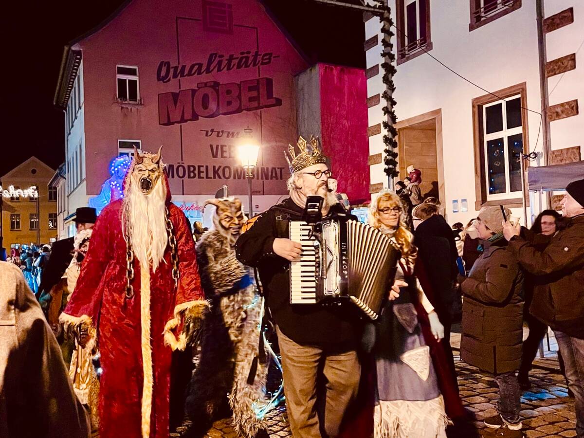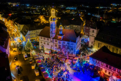 Auch die letzte Großveranstaltung des Jahres kann wieder als voller Erfolgt bezeichnet werden. Über 10.000 Besucherinnen und Besucher aus Eisenberg und der Region strömten an drei Weihnachtsmarkt-Tagen in die Innenstadt. Besondere Besuchermagnete waren wieder die beliebten Walkacts, welche auf dem Steinweg und dem Markt unterwegs waren, die musikalischen Einlagen auf den beiden Bühnen am Markt sowie das Angebot an elektronischer Musik auf dem Hof der Stadtbibliothek. Richtig voll wurde es wieder am Samstag, als sich die Weihnachtsfiguren-Parade ihren Weg über den Steinweg auf den Markt bahnte. Über 100 verschiedene internationale Weihnachtsfiguren wurden von den Freiwilligen präsentiert. Bürgermeister Michael Kieslich zeigte sich dankbar für die Leistung der vielen haupt- und ehrenamtlichen Helferinnen und Helfer. Hier finden Sie einige Impressionen zum Weihnachtsmarkt-Wochenende 2025.